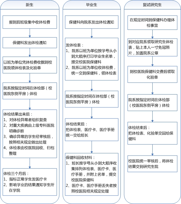 ⑥体检后需要复查的同学,应按约定时间准时到校医院及时复查。